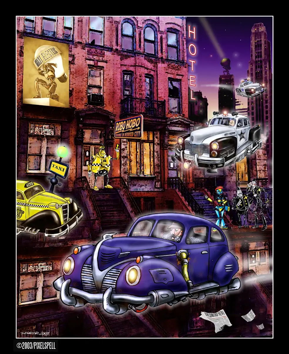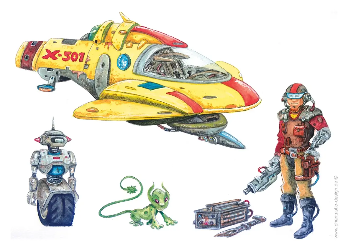 In selbst erlernter, traditioneller Technik erschafft er Werke mit klassischen Materialien wie Aquarell, Gouache, Acryl, Tusche – ergänzt durch digitale Medien. Seine Bildwelten reichen von Comics bis hin zur fantastischen Kunst und zeigen eine beeindruckende stilistische Vielfalt.